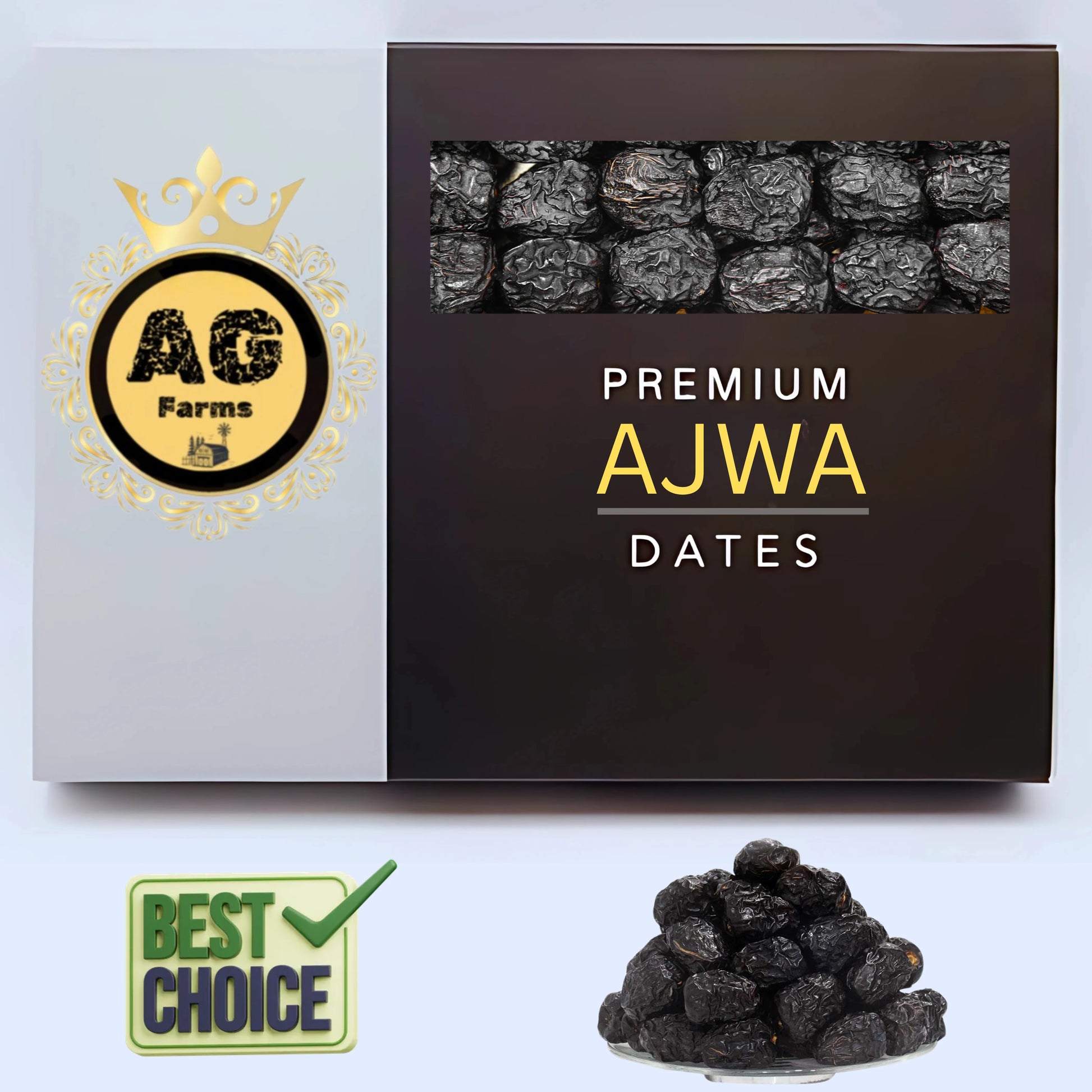 Ajwa Dates await your tasting pleasure as fresh organic produce collected from the AG Farms. Premium Ajwa Dates varieties present themselves as delightfully soft delights which offer an enjoyable sweetness along with essential fibers & antioxidants & essential minerals. People regard Ajwa Dates as both wholesome and spiritually meaningful because they serve fasting needs & provide suitable present options & everyday enjoyment. The product contains nothing artificial since each bite provides you with 100% pure goodness. Central Pakistan receives Ajwa Dates that are both fresh & hygienically sealed next to delivery service for every household.